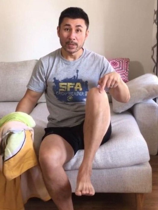Photo/Reproduction : Éric montre à quel point le produit est pratique — on peut l’utiliser n’importe quand, n’importe où.