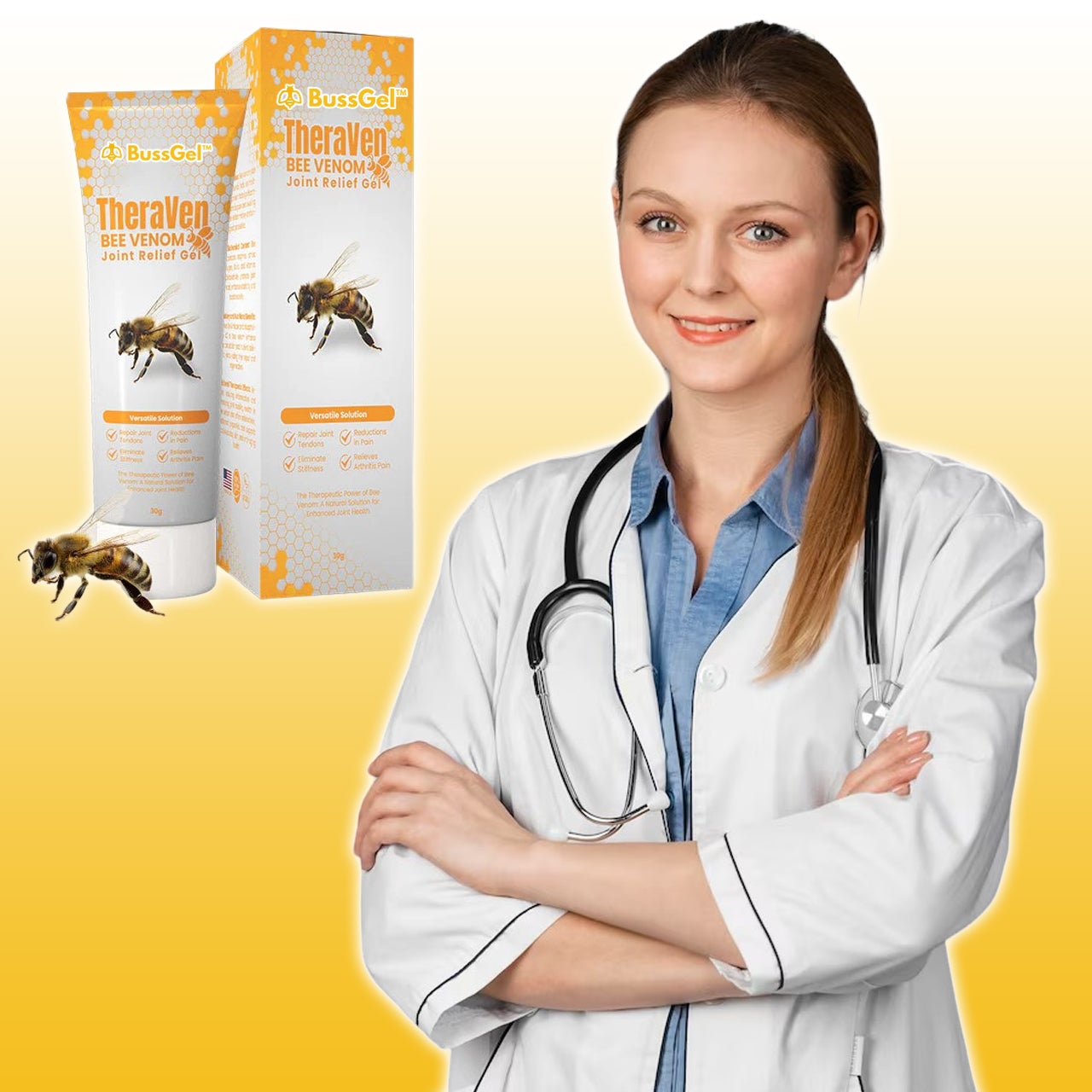 אתה לא צריך להוציא אלפי דולרים על פגישות ולבזבז שעות על נסיעה למשרד… במקום זאת, בכל פעם שאני מרגישה את הרמז הקטן ביותר לאי נוחות בברכיים… אני מורחת את BussGel™, נחה במשך 15 דקות, והאי נוחות נעלמת… לאחר 15 דקות בלבד של מנוחה ונעימות, אני חוזרת למטלות ולחיים היומיומיים שלי. אם זה לא היה בשביל הג'ל, הייתי צריכה לעבור את הניתוח. ואתה יודע כמה זה מסוכן… יש כל כך הרבה סיבוכים… חודשים של טיפול… ואני אפילו לא אזכיר את העלות.